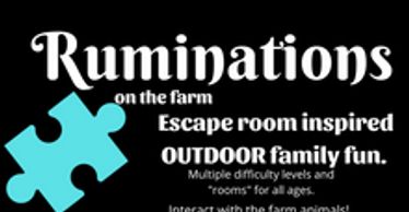 Ruminations on the Farm is our new Escape "Room" venture. Come test your puzzle skills and "escape" the farm pens!