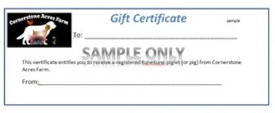 Home raised pork. We are now raising the amazing Kunekune pig for pork. Each full share holder will get approximately 20-30# of pork packaged to your specifications. Each half share holder will get approximately 10-15#. Weight will also be dependent on the time of year our piglet crop is born. Generally we have one litter every 9 months. Sausage can be made at no extra charge. (If you choose to have your meat smoked that IS an additional charge.) You will also get approximately 2-4# of lard if you so choose (so many uses for that lard!).